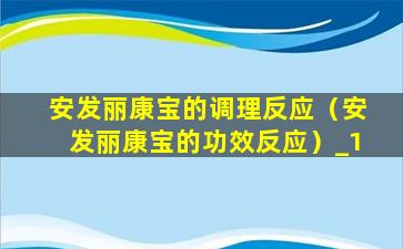 安发丽康宝的调理反应(安发丽康宝的功效反应)