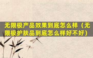 无限极产品效果到底怎么样(无限极护肤品到底怎么样好不好)
