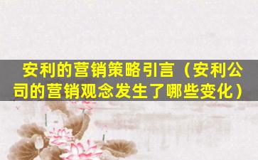安利的营销策略引言(安利公司的营销观念发生了哪些变化)