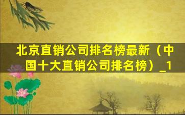 1、北京直销公司排名榜最新