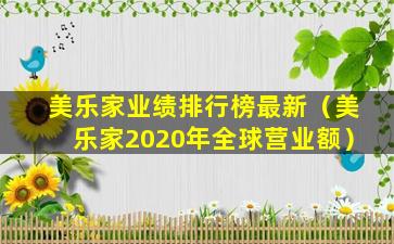美乐家业绩排行榜最新(美乐家2020年全球营业额)