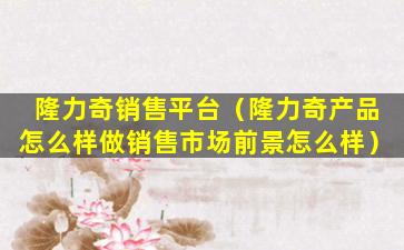 隆力奇销售平台(隆力奇产品怎么样做销售市场前景怎么样)
