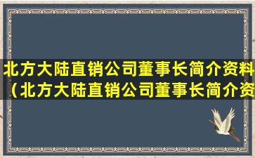 北方大陆直销公司董事长简介资料(北方大陆直销公司董事长简介资料及图片)