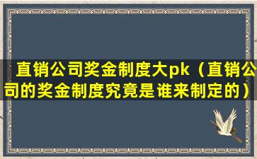 直销公司奖金制度大pk(直销公司的奖金制度究竟是谁来制定的)