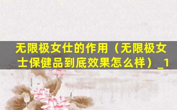 无限极女仕的作用(无限极女士保健品到底效果怎么样)