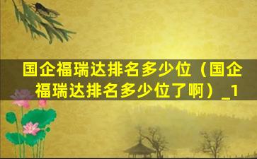 国企福瑞达排名多少位(国企福瑞达排名多少位了啊)