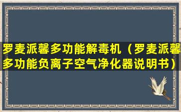 罗麦派馨多功能解毒机(罗麦派馨多功能负离子空气净化器说明书)