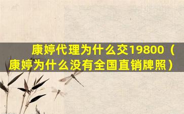 康婷代理为什么交19800(康婷为什么没有全国直销牌照)