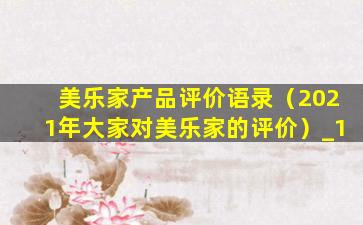 美乐家产品评价语录(2021年大家对美乐家的评价)