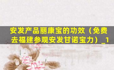 安发产品丽康宝的功效(免费去福建参观安发甘诺宝力)