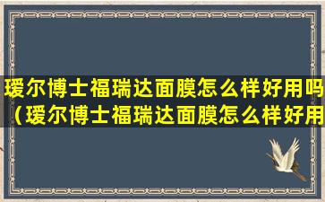 3、瑷尔博士福瑞达面膜怎么样好用吗知乎