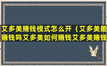艾多美赚钱模式怎么开(艾多美能赚钱吗艾多美如何赚钱艾多美赚钱容易吗)