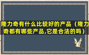 隆力奇有什么比较好的产品(隆力奇都有哪些产品,它是合法的吗)
