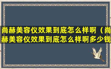 尚赫美容仪效果到底怎么样啊(尚赫美容仪效果到底怎么样啊多少钱)