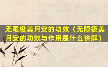 无限极美月安的功效(无限极美月安的功效与作用是什么讲解)