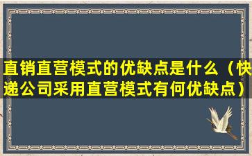 直销直营模式的优缺点是什么(快递公司采用直营模式有何优缺点)