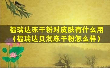 福瑞达冻干粉对皮肤有什么用(福瑞达贝润冻干粉怎么样)