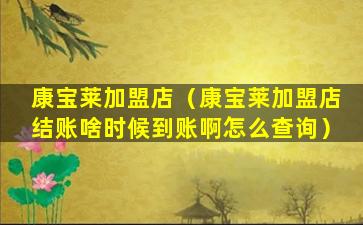 2、康宝莱加盟店结账啥时候到账啊怎么查询