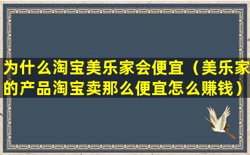 为什么淘宝美乐家会便宜(美乐家的产品淘宝卖那么便宜怎么赚钱)