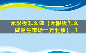 无限极怎么做(无限极怎么做陌生市场一万业绩)