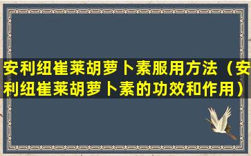 安利纽崔莱胡萝卜素服用方法(安利纽崔莱胡萝卜素的功效和作用)