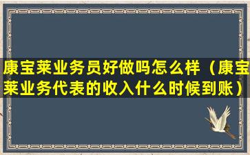 康宝莱业务员好做吗怎么样(康宝莱业务代表的收入什么时候到账)