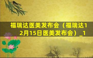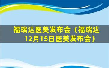 福瑞达医美发布会(福瑞达12月15日医美发布会)