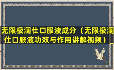 无限极澜仕口服液成分(无限极澜仕口服液功效与作用讲解视频)
