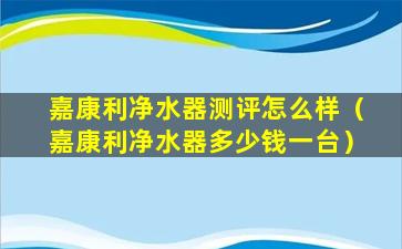 嘉康利净水器测评怎么样(嘉康利净水器多少钱一台)