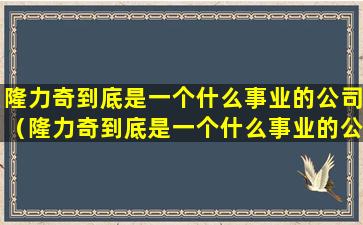 隆力奇到底是一个什么事业的公司(隆力奇到底是一个什么事业的公司啊)