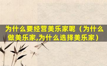 为什么要经营美乐家呢(为什么做美乐家,为什么选择美乐家)