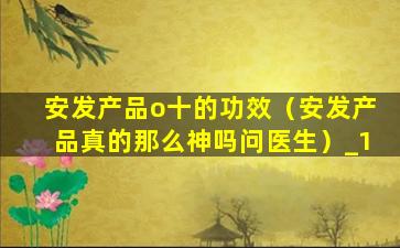 安发产品o十的功效(安发产品真的那么神吗问医生)