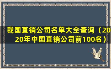 我国直销公司名单大全查询(2020年中国直销公司前100名)