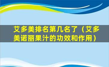 艾多美排名第几名了(艾多美诺丽果汁的功效和作用)