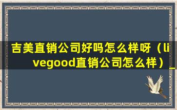 吉美直销公司好吗怎么样呀(livegood直销公司怎么样)