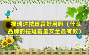 福瑞达祛斑霜好用吗(什么品牌的祛斑霜最安全最有效)