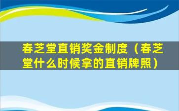 春芝堂直销奖金制度(春芝堂什么时候拿的直销牌照)