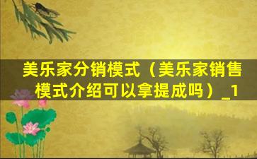 美乐家分销模式(美乐家销售模式介绍可以拿提成吗)
