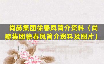 尚赫集团徐春凤简介资料(尚赫集团徐春凤简介资料及图片)