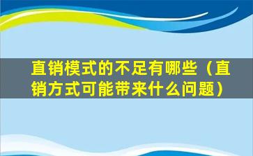直销模式的不足有哪些(直销方式可能带来什么问题)