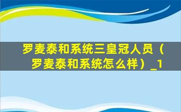 罗麦泰和系统三皇冠人员(罗麦泰和系统怎么样)