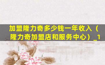 加盟隆力奇多少钱一年收入(隆力奇加盟店和服务中心)