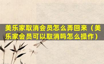 美乐家取消会员怎么弄回来(美乐家会员可以取消吗怎么操作)