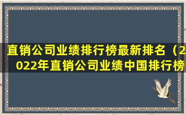 直销公司业绩排行榜最新排名(2022年直销公司业绩中国排行榜)