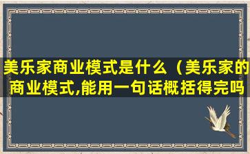 美乐家商业模式是什么(美乐家的商业模式,能用一句话概括得完吗)