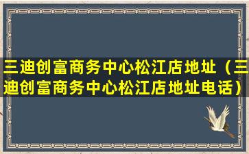 三迪创富商务中心松江店地址(三迪创富商务中心松江店地址电话)