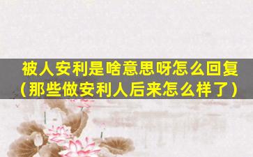 被人安利是啥意思呀怎么回复(那些做安利人后来怎么样了)
