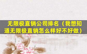 无限极直销公司排名(我想知道无限极直销怎么样 好不好做)