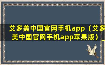 艾多美中国官网手机app(艾多美中国官网手机app苹果版)