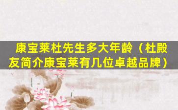 康宝莱杜先生多大年龄(杜殿友简介康宝莱有几位卓越品牌)